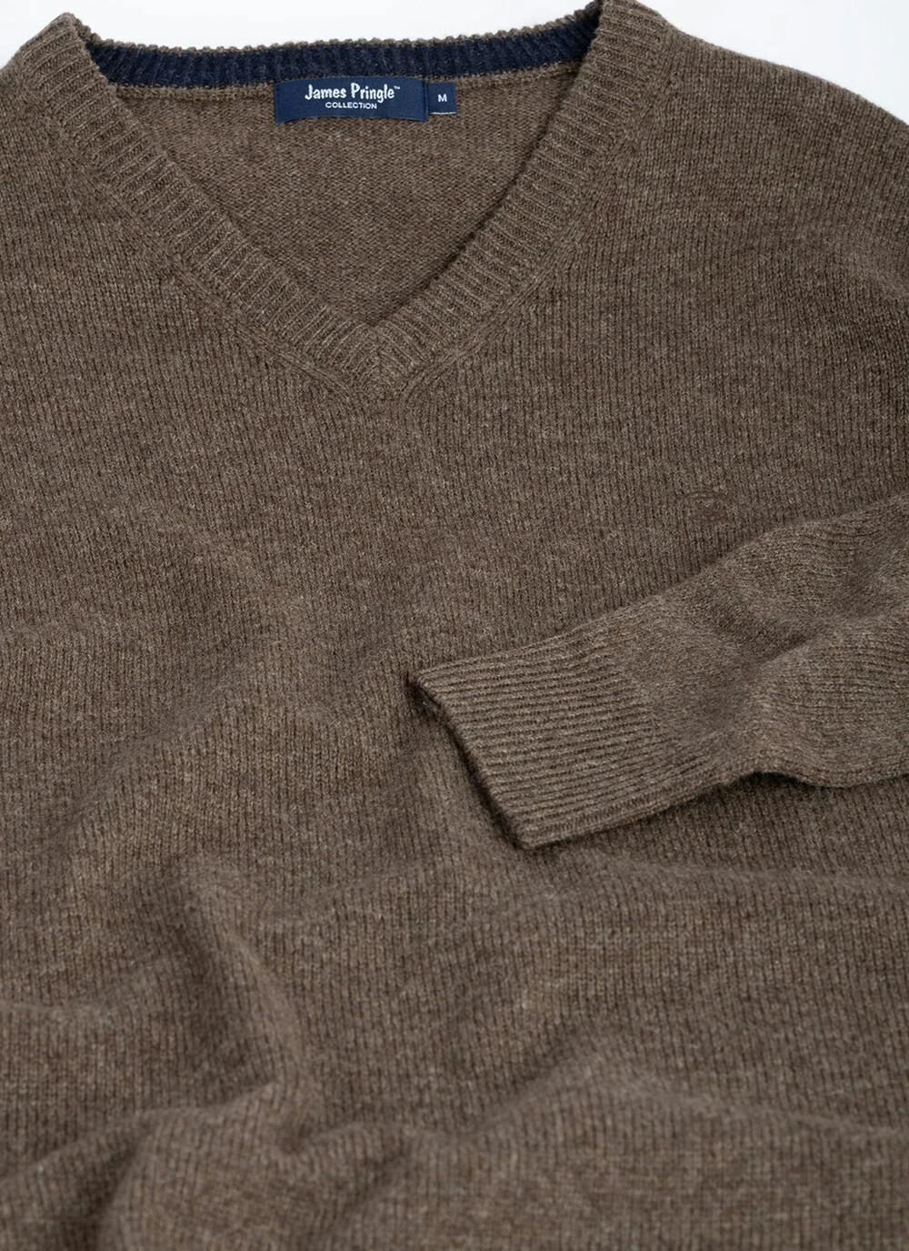 This classic V neck jumper by James Pringle is made from 100% lambswool and is machine washable. Comfortable and warm, it’s an essential item for your wardrobe.