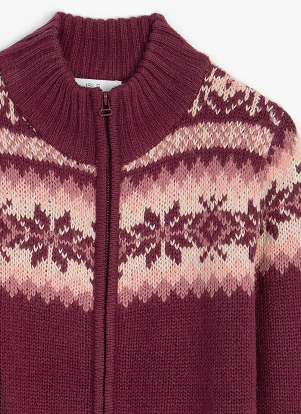 This fairisle cardigan by Isle is perfect for keeping out the chill this season. Designed with a flattering funnel neck, zip front and side pockets. Perfect for layering, wear over your favourite Isle top for an extra layer of warmth.