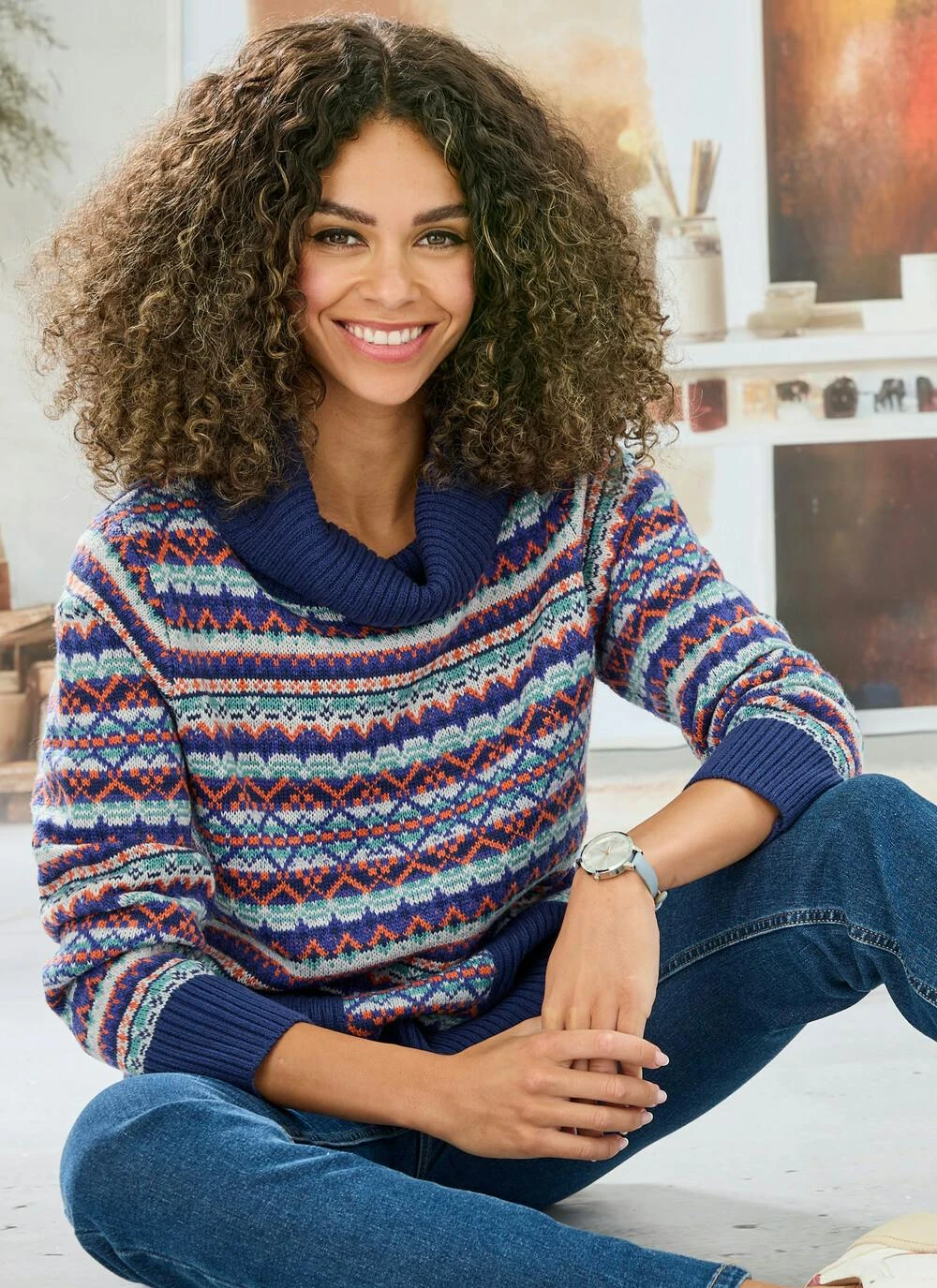 This stunning cowl neck fairisle top from Country Rose is sure to be your new autumn staple. Made from a super soft yarn, unique design, and pretty colourway, what’s not to love? Layer over your favourite country rose top for an easy yet stylish outfit.