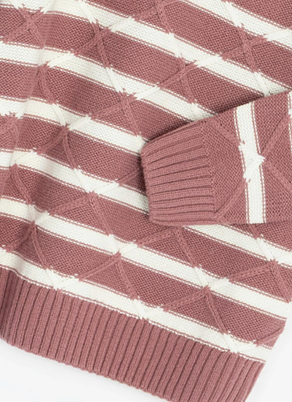 Lattice Stitch Striped Turtle Neck Jumper