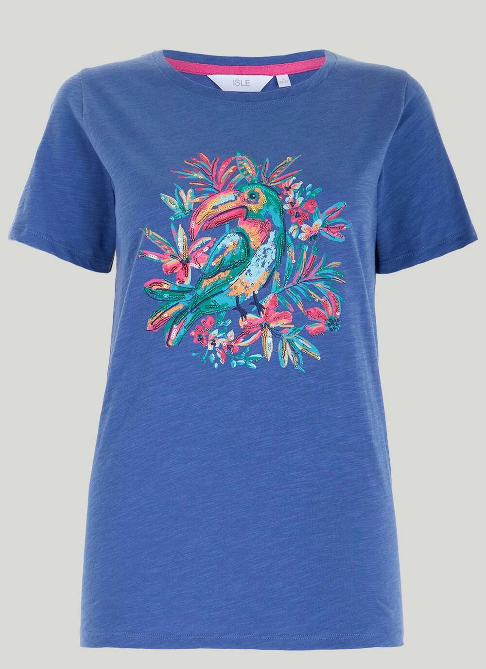 Add a fun element to your wardrobe in this toucan print t-shirt by Isle. Crafted in pure cotton and designed to flatter, wear with crops or a skirt for a stylish weekend look.