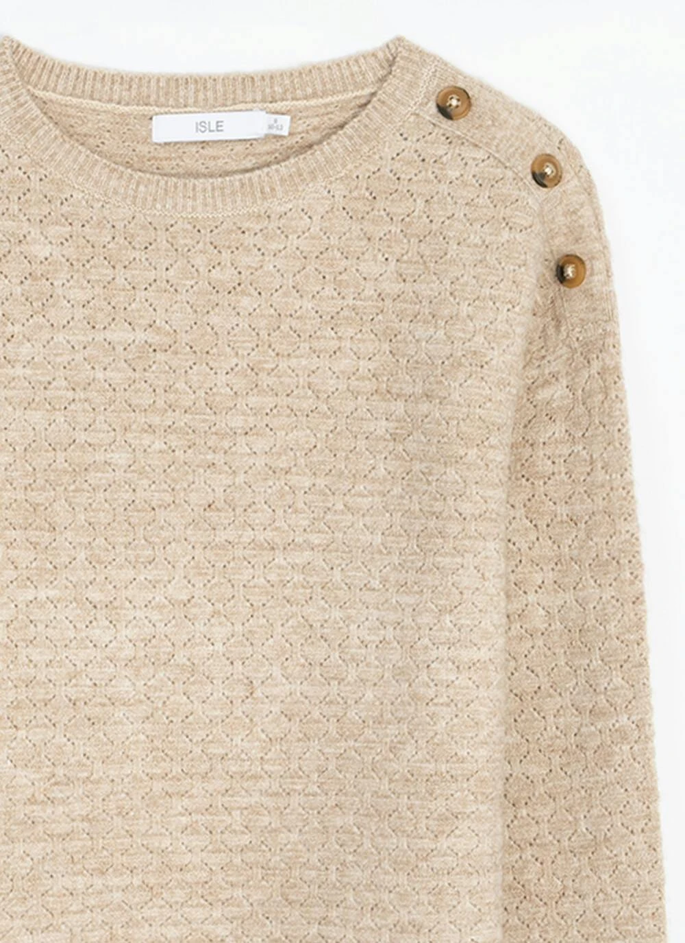 This soft touch jumper by Isle is designed to keep you cosy this season. Made in a regular fit, this long sleeved jumper features a classic crew neckline, all over cable design and is finished with button detailing on the shoulder. Style with jeans or jeggings for an effortless look