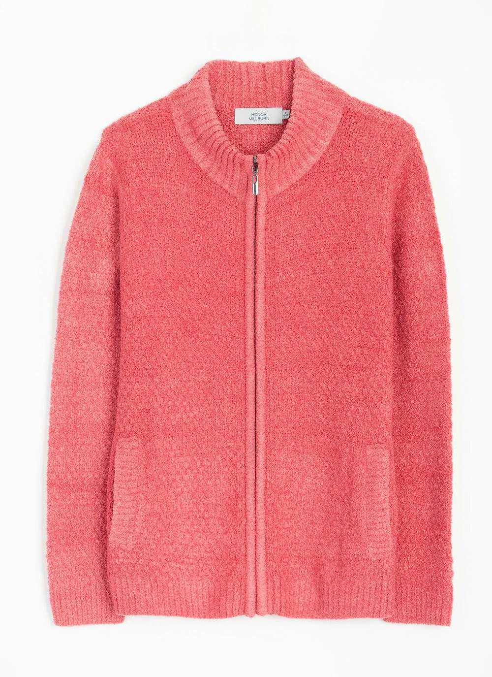 Zip front, funnel neck cardigan with long sleeves and two front pockets. Crafted from a soft touch yarn for a comfortable and feminine style. Team with Honor Millburn Collection trousers and skirts for a lovely fresh look for the new season.