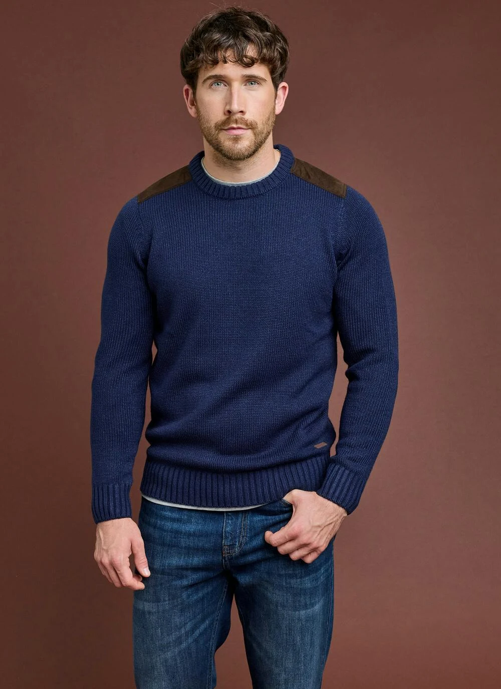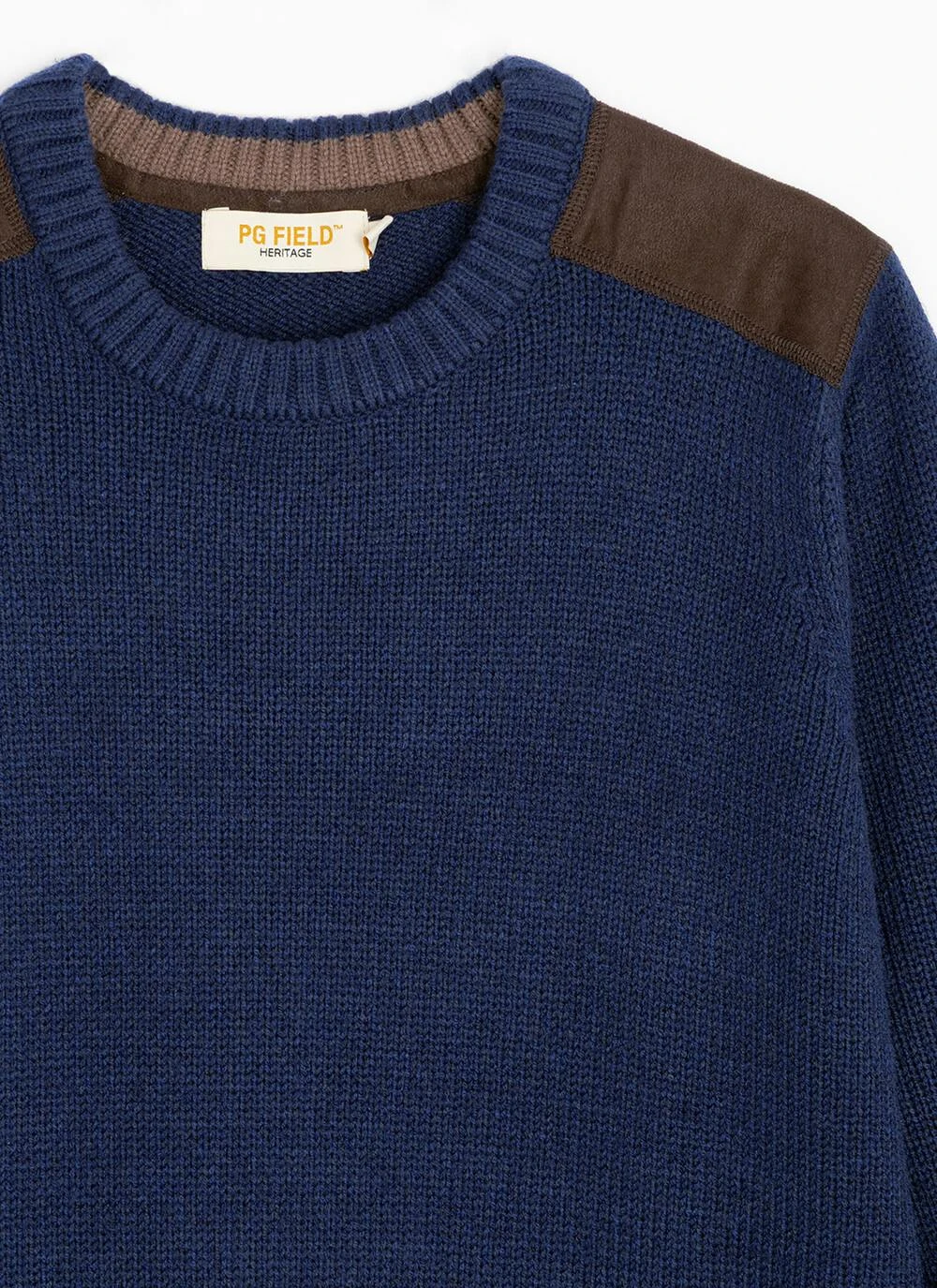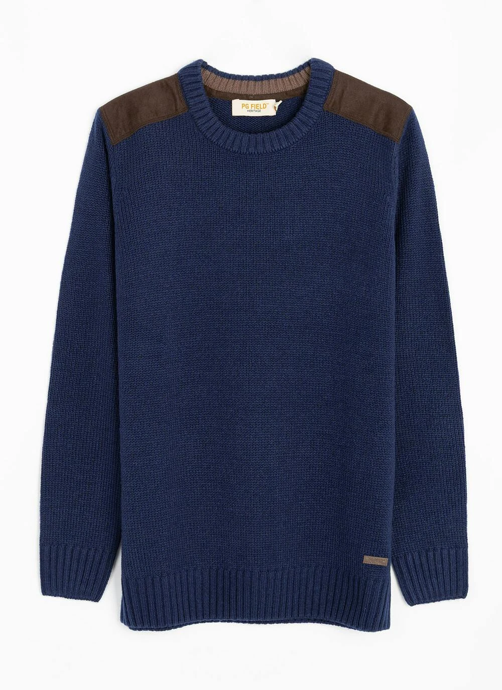 This textured knit, crew neck jumper by PG Field features faux suede trims for an elevated, practical year round layer for your wardrobe.