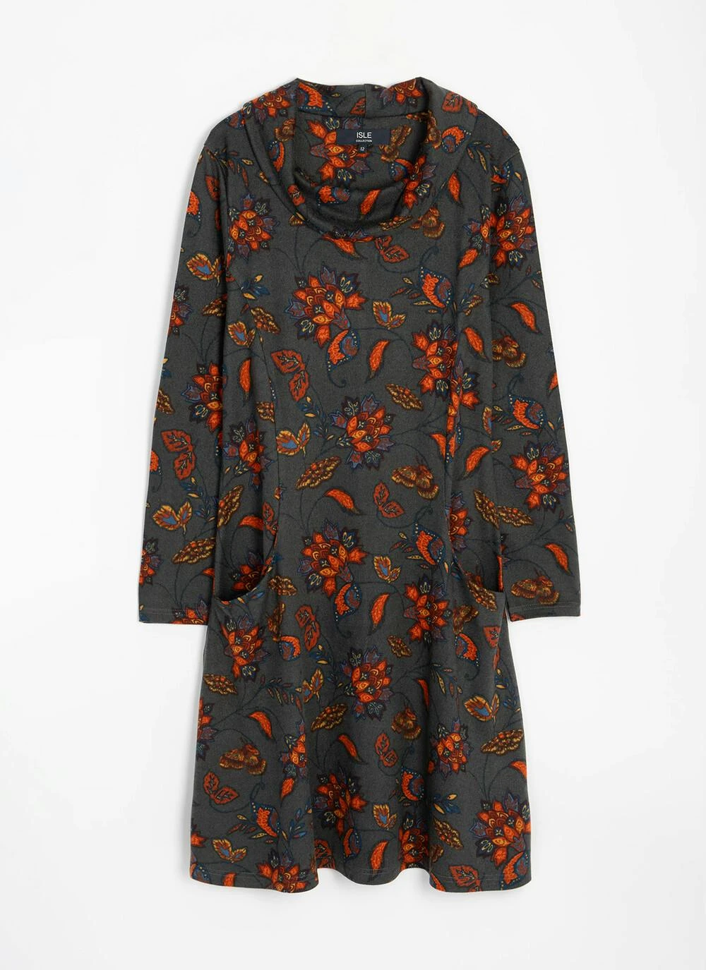 Warm Handle Cowl Neck Printed Dress