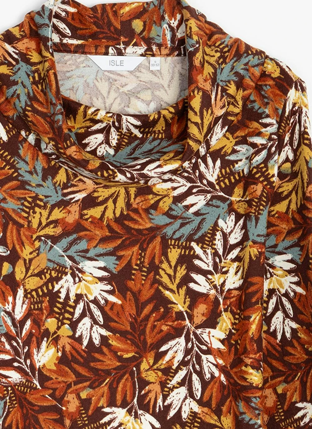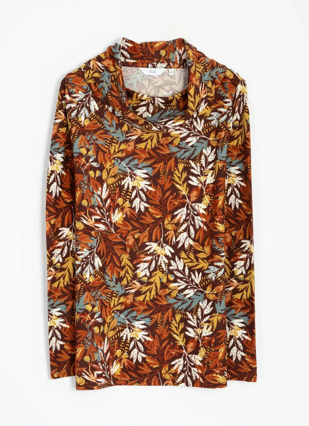 This warm handle, soft touch top by Isle is designed to keep you cosy this season. With a flattering cowl neck and a contemporary print, style this versatile top with your favourite jeans or jeggings.