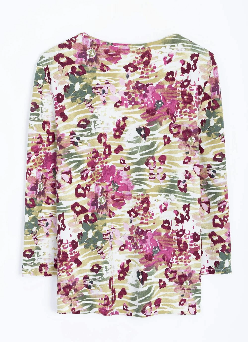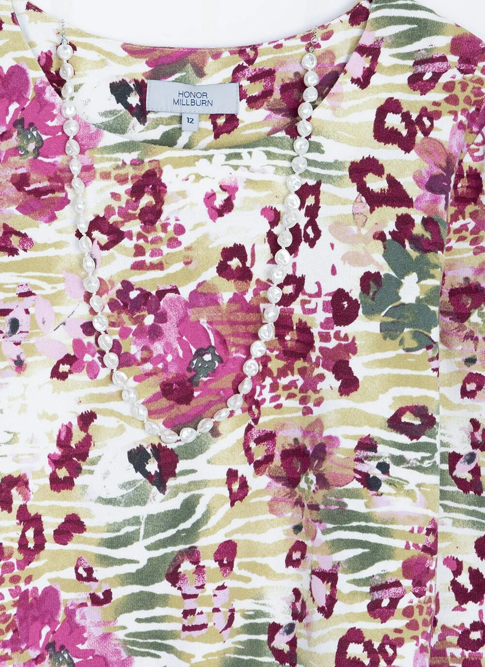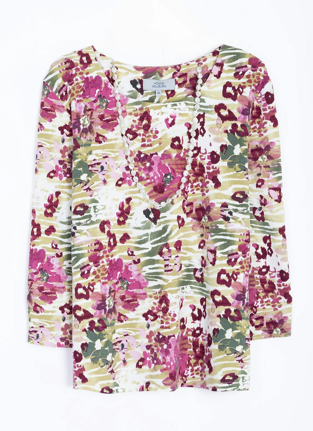 Top with 3/4 length sleeves in an attactive and modern print and warm touch, brushed jersey fabric, with a pretty necklace included Team with Honor Millburn Collection trousers and skirts to refresh your seasonal wardrobe.