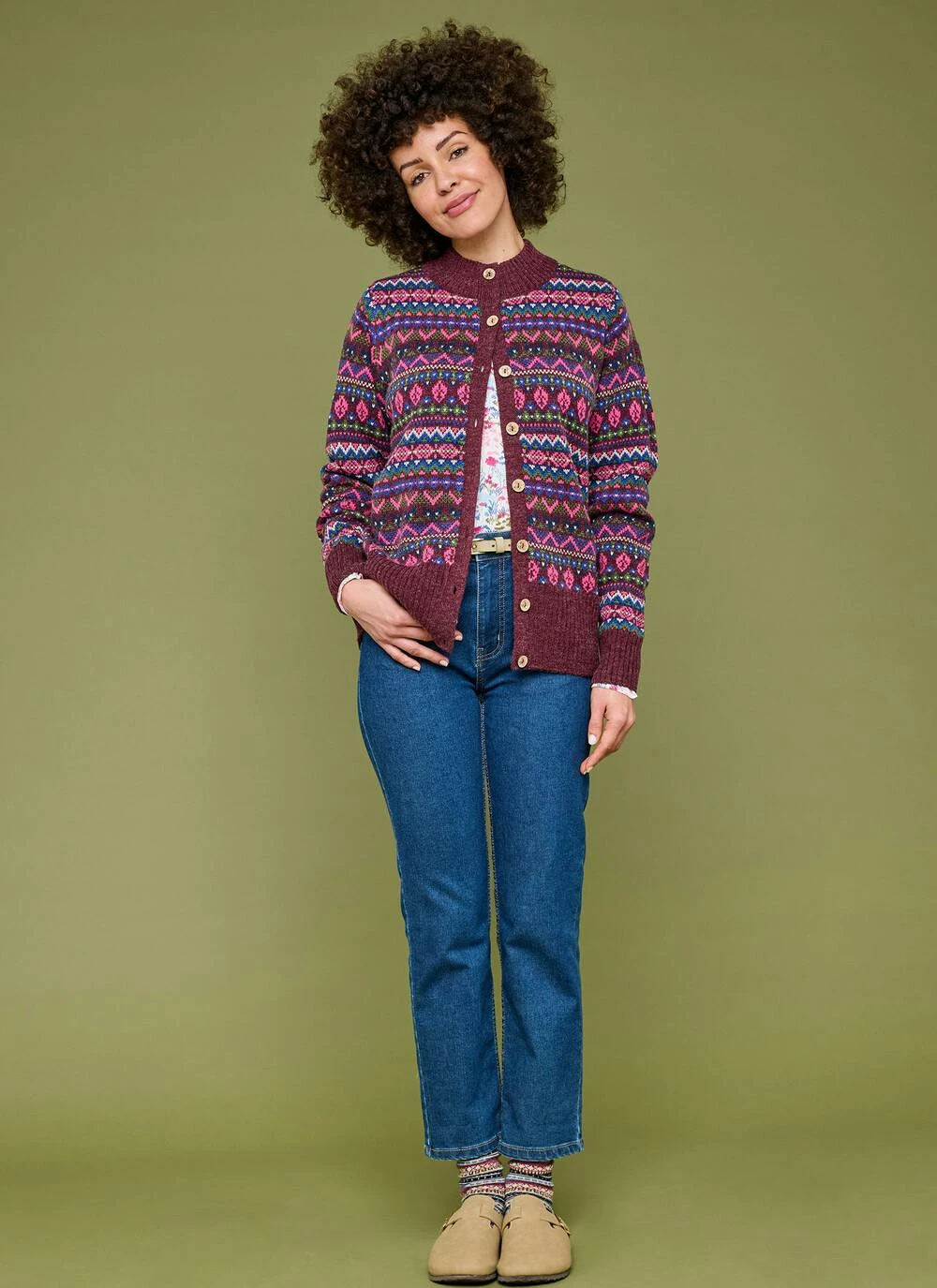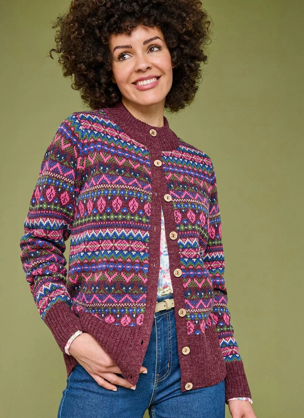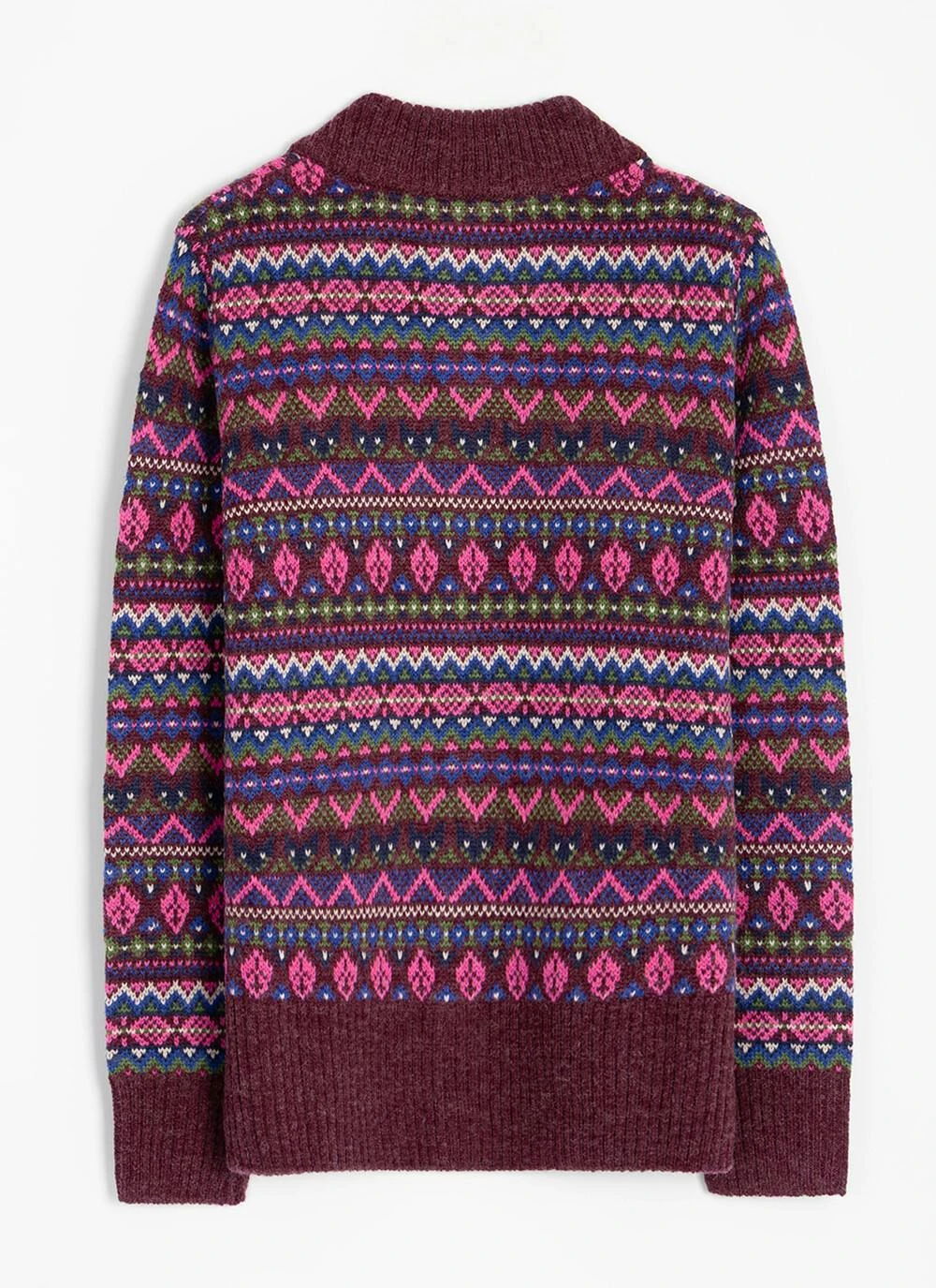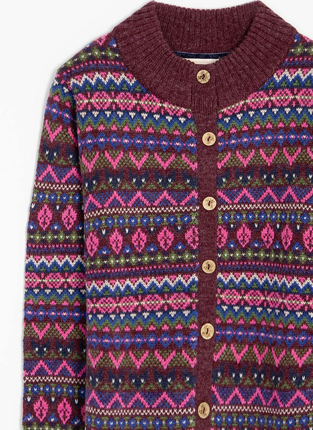 Wool Blend Fairisle Funnel Neck Cardigan